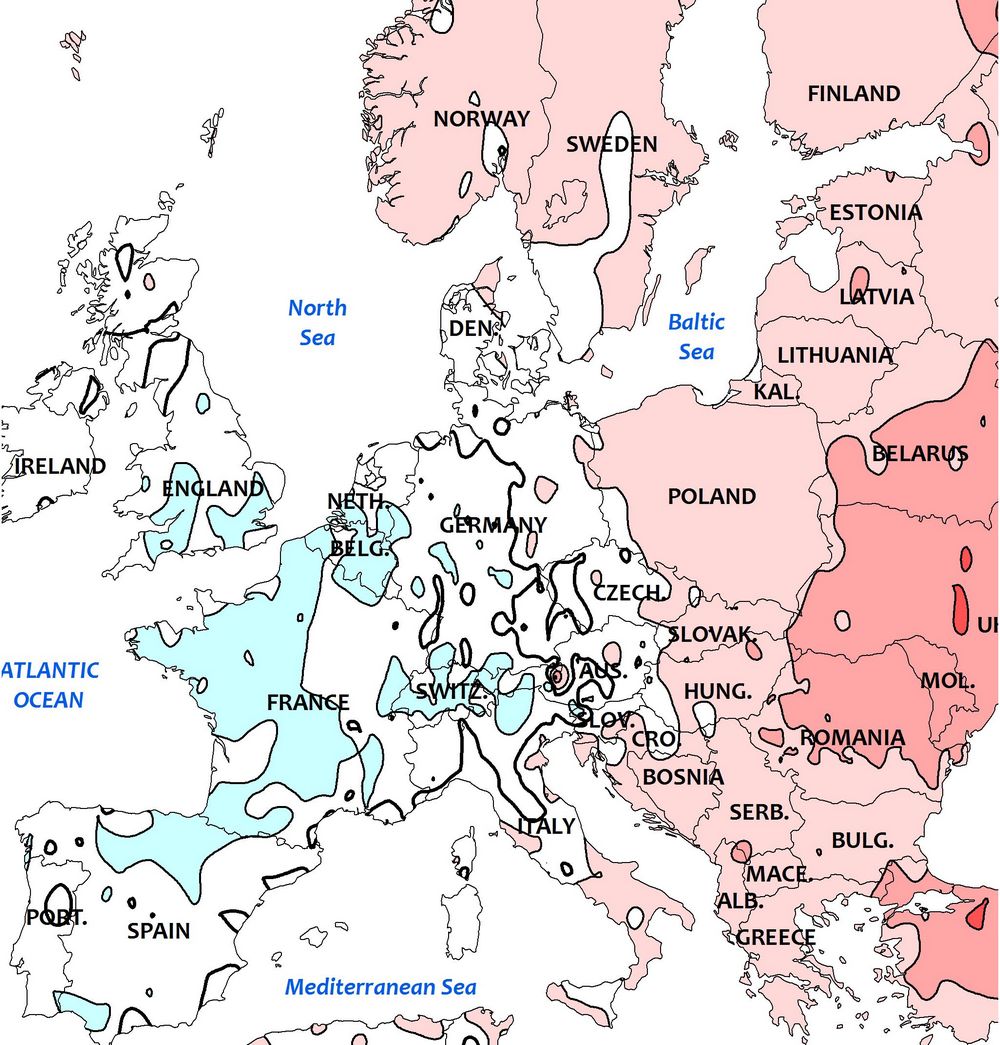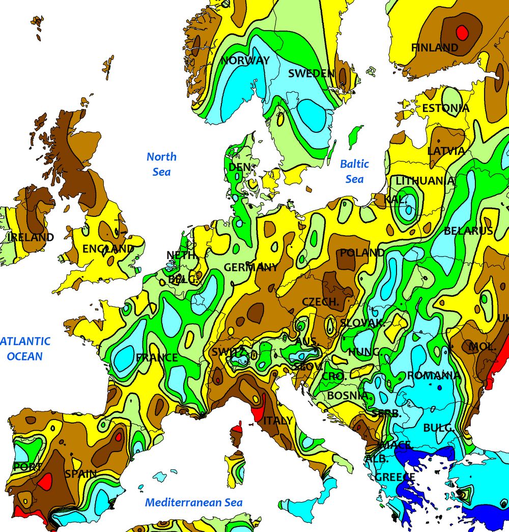 Écart aux normales des températures et précipitations pour l'Europe occidentale.