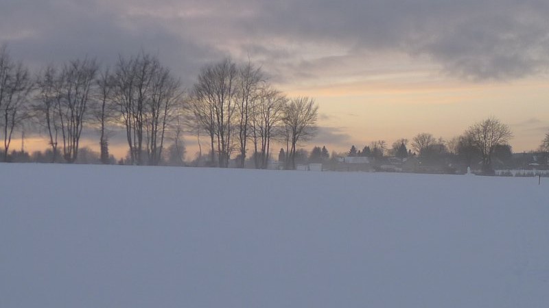 En Gaume, bien loin de la zone décrite, c’est tout l’inverse qui se passe : la neige, bien présente le matin, fond en journée sous un brouillard de dégel.