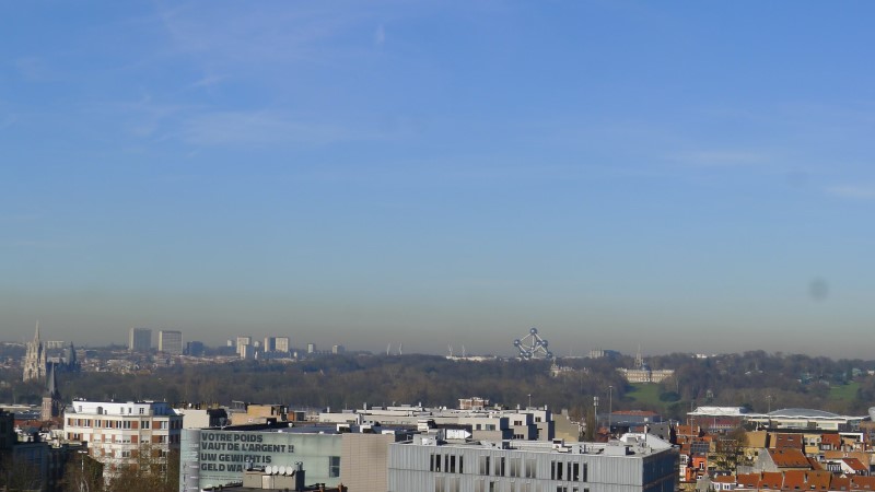 vue de Schaerbeek et sa couche de pollution atmosphérique, bien visible.