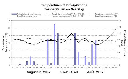 Sous l'influence majoritairement de courants maritimes d'origine polaire, le début du mois d'août fut très frais et perturbé jusqu'à la moitié du mois.