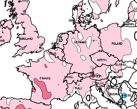 Anticyclone Mer du Nord, s'étendant progressivement vers l'Autriche