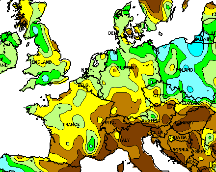Ecart aux normales des températures et précipitations pour l'Europe occidentale.