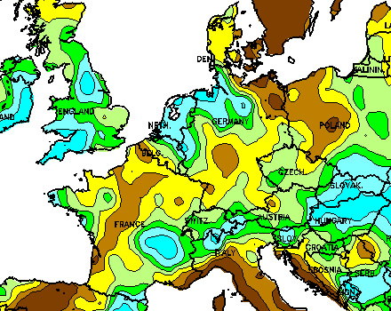 Ecart aux normales des températures et précipitations pour l'Europe occidentale.