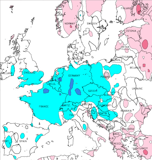Anticyclone GB => Europe Est |