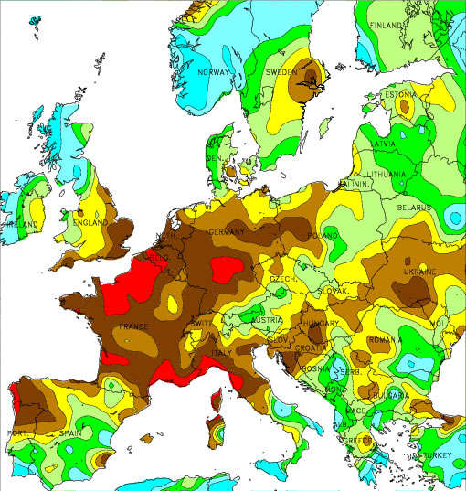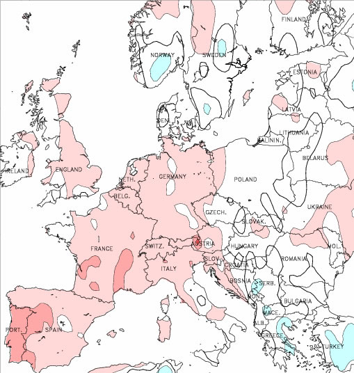 Écart aux normales des températures et précipitations pour l'Europe occidentale.