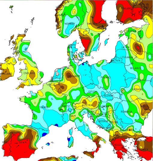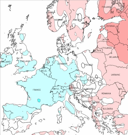 Écart aux normales des températures et précipitations pour l'Europe occidentale.