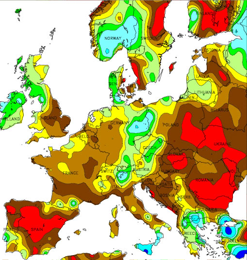 Écart aux normales des températures et précipitations pour l'Europe occidentale.