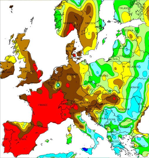 Écart aux normales des températures et précipitations pour l'Europe occidentale.