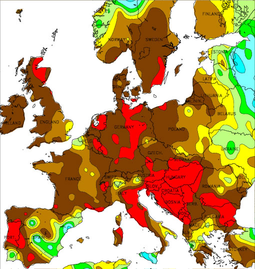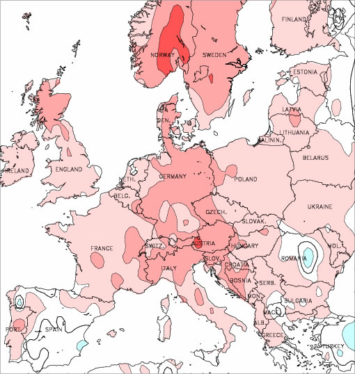 Écart aux normales des températures et précipitations pour l'Europe occidentale.
