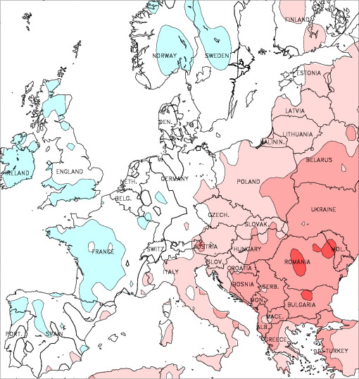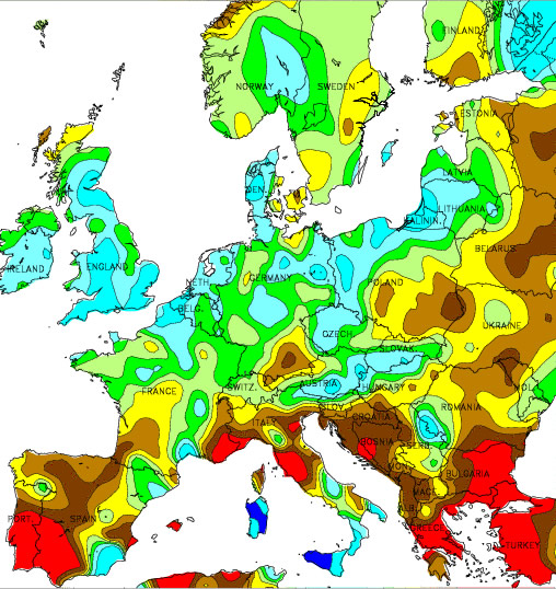 Écart aux normales des températures et précipitations pour l'Europe occidentale.