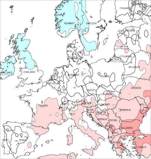 Écart aux normales des températures et précipitations pour l'Europe occidentale.