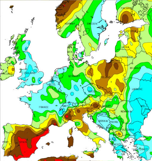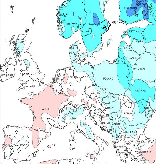 Écart aux normales des températures et précipitations pour l'Europe occidentale.