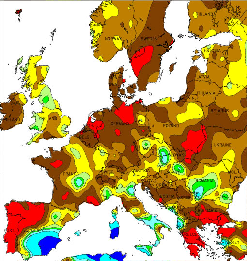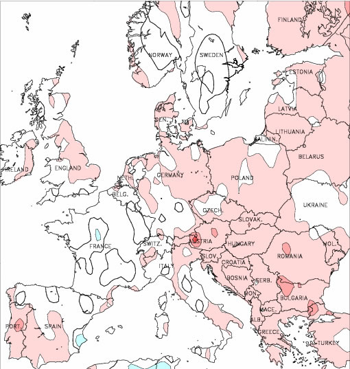 Écart aux normales des températures et précipitations pour l'Europe occidentale.