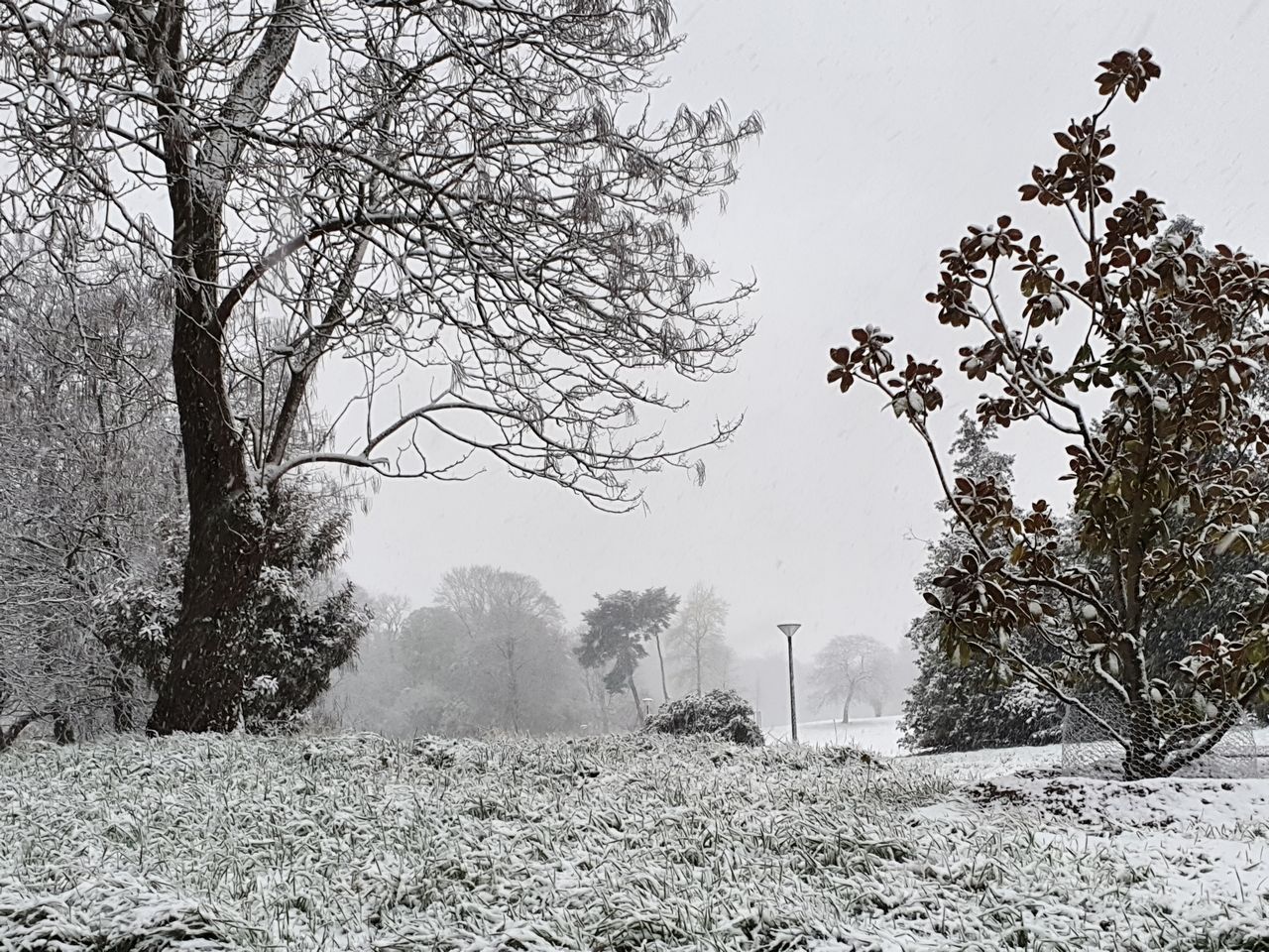 Neige modérée sur la Capitale ce 1er avril 2022 au parc de Laeken en matinée. La couche mesurée avoisine les 3 cm.