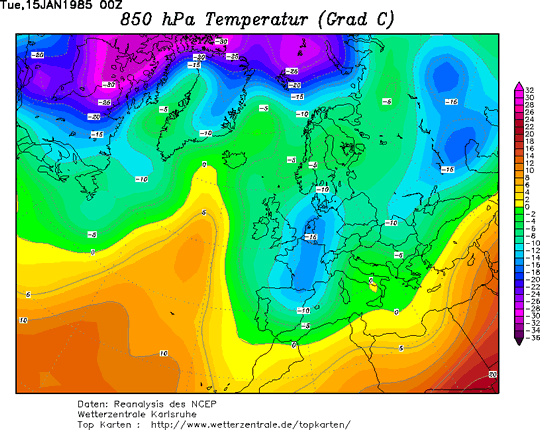 Abstraction faite de cela, la douceur atteindra son apogée le 2 février 1985 où, sous un ciel nuageux à beau avec cumulus, stratocumulus et altocumulus, et un petit vent doux d’ouest, on a une véritable impression de printemps, avec des températures de 11 à 12°C en de nombreux endroits.