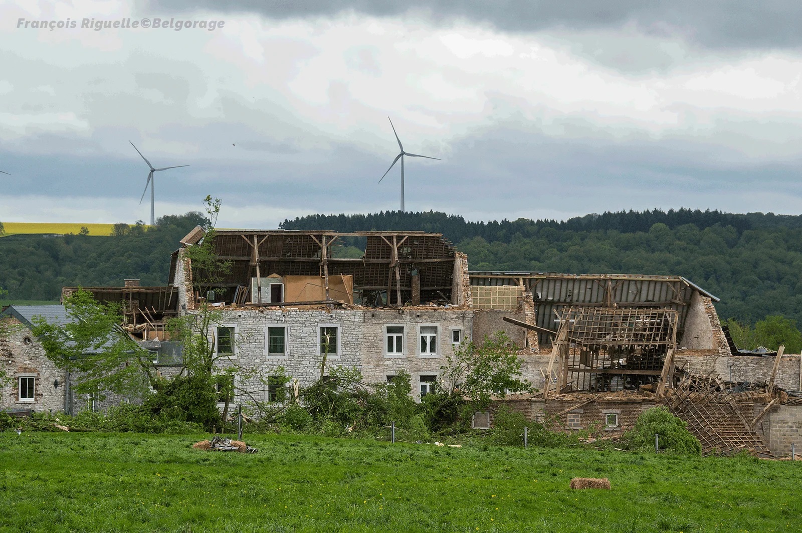 Il n’en est pas moins que les dégâts sont impressionnants. En fait, ce n’est pas une seule tornade qui s’est formée, mais deux. La première tornade effectue un trajet assez court, de Dion à (un peu à l’ouest de) Mesnil-Saint-Blaise. Dion se trouve entre Givet et Beauraing, Mesnil-Saint-Blaise se trouve entre Hastière et Beauraing. La seconde tornade fait un trajet plus long et débute, elle, son trajet à Mesnil-Saint-Blaise pour aller à Waulsort, puis à Lenne, un peu à l’est d’Hastière. Bien sûr, comme les tornades n’étaient pas (ou très peu) visibles, seule une enquête de terrain a posteriori, analysant les dégâts, a permis de déterminer la présence et le trajet des deux tornades.
