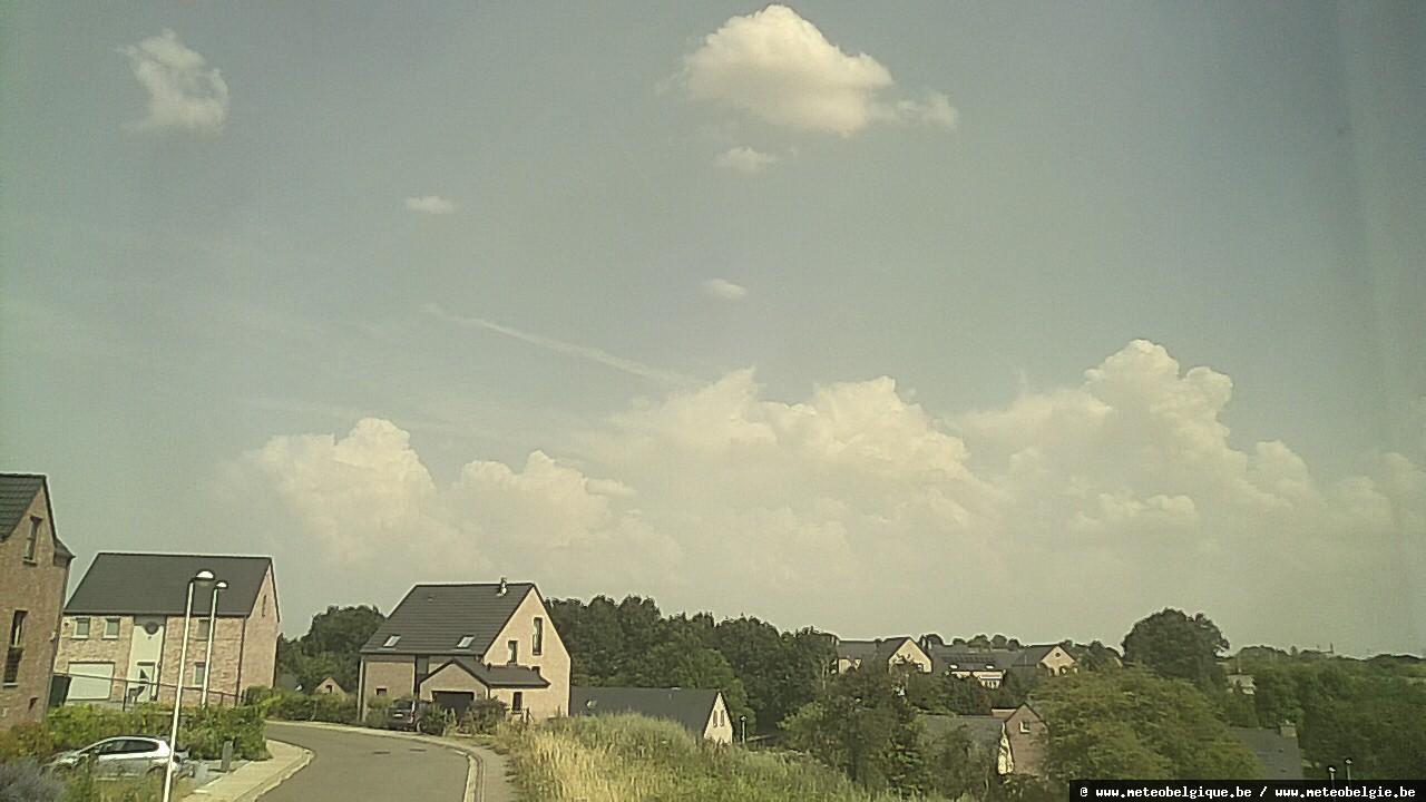 Les vents soufflent d’est à sud-est une bonne partie de la journée et le temps est d’abord beau, avec des cirrus et des altocumulus, parfois castellanus, parfois aussi lenticularis. Mais la ligne de convergence, tout doucement, s’approche quand même et sert en même de temps de rail pour des averses orageuses, dès le tout début de l’après-midi dans les Cantons de l’Est (du côté de Raeren, La Calamine) puis, vers le milieu d’après-midi aussi au Limbourg, et enfin en soirée sur le nord du pays.