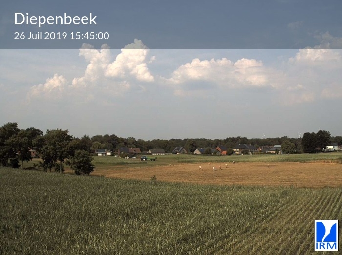Ci-dessous, un exemple d’orage peu pluvieux, mais temporairement très rafraîchissant dans la région de Landen, en province du Brabant Flamand :