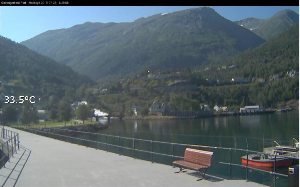 Fjord de Geiranger (Norvège) écrasé de chaleur le 28 juillet à 16h29
