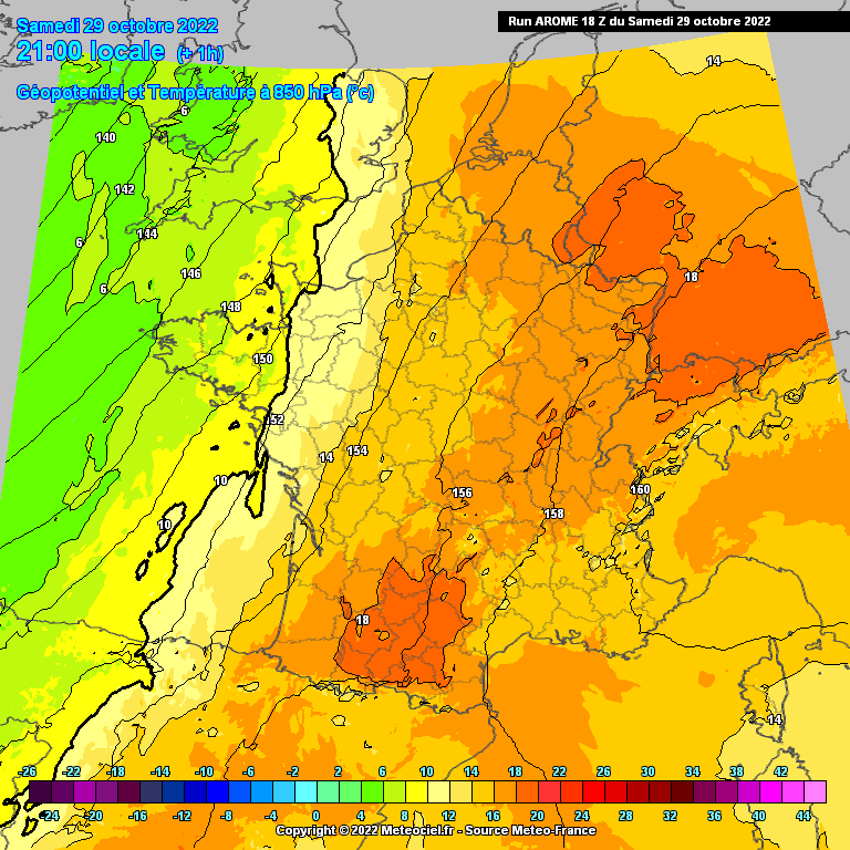 En soirée, les températures baissent partout, avec à 21 heures plus que 13 à 14°C en plaine et 10 à 11°C sur les hauteurs, ce qui annonce la fin progressive de l’énorme douceur que nous avons connue en cette fin d’octobre.