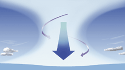 Dans les zones de hautes pressions, des masses d’air froides descendent et s’assèchent.
