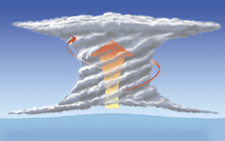 Les vents sont plus violents sous une dépression parce que celle-ci, surtout si la pression en son centre est fort basse, aspire l’air environnant au niveau du sol pour le faire monter dans le centre de la dépression. Ouragans, typhons et tempêtes ne sont en fait que de très grosses dépressions !