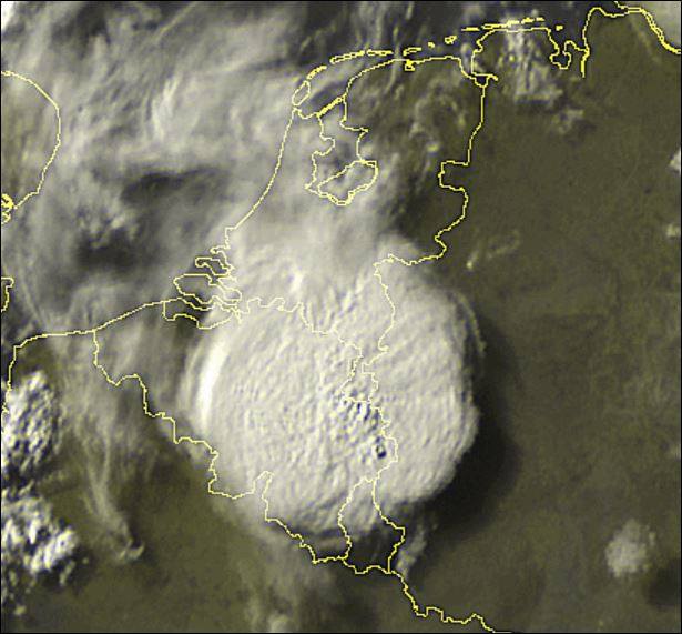Important MCS centré sur la Belgique, le 9 juin 2014 en soirée. On remarquera l'ombre du "monstre" à droite.