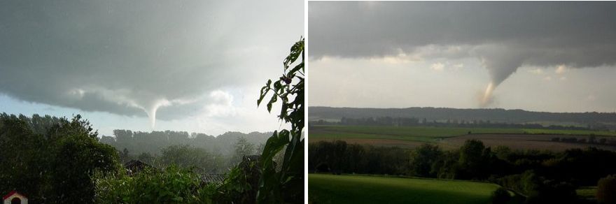 Deux photos d'une tornade spectaculaire qui a été photographiée en province de Hainaut le 1er octobre 2006.