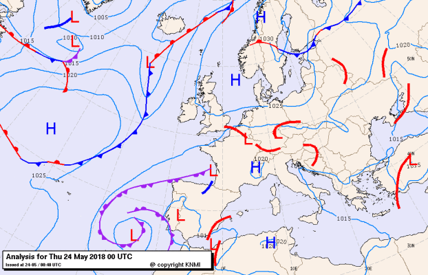 Situation typique de marais barométrique ce 24 mai 2018 : peu de variation (de relief) de