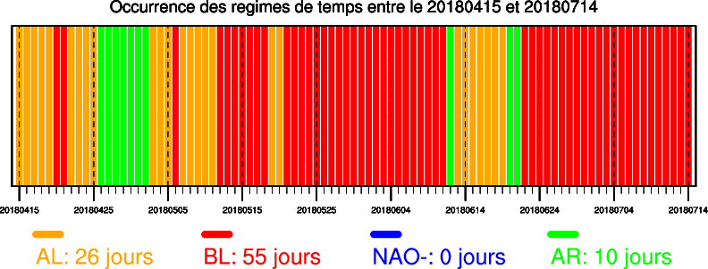 Situation classique de blocage, le 16 juillet 2018: un anticyclone s'étirant