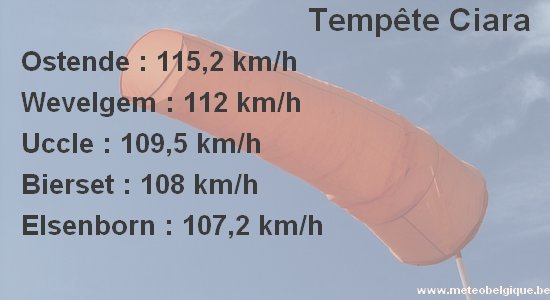 Sans être exceptionnelles, les vitesses des rafales de vent sont néanmoins remarquables, avec le seuil des 100 km/h dépassés en de nombreux endroits, ce qui a occasionné des dégâts et de nombreuses interventions des pompiers pour des dégâts aux bâtiments, ou pour des arbres tombés sur la chaussée un peu partout dans notre pays.