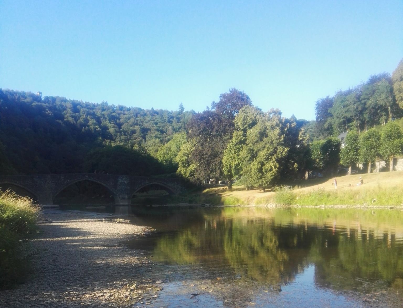 Sur la photo, le niveau de la Semois, bien bas, près de Bouillon, à la mi-août.