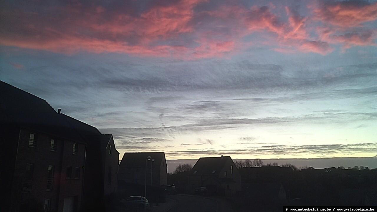 Ciel rougeoyant, le matin du 8 mars 2020 à Braine l'Alleud.