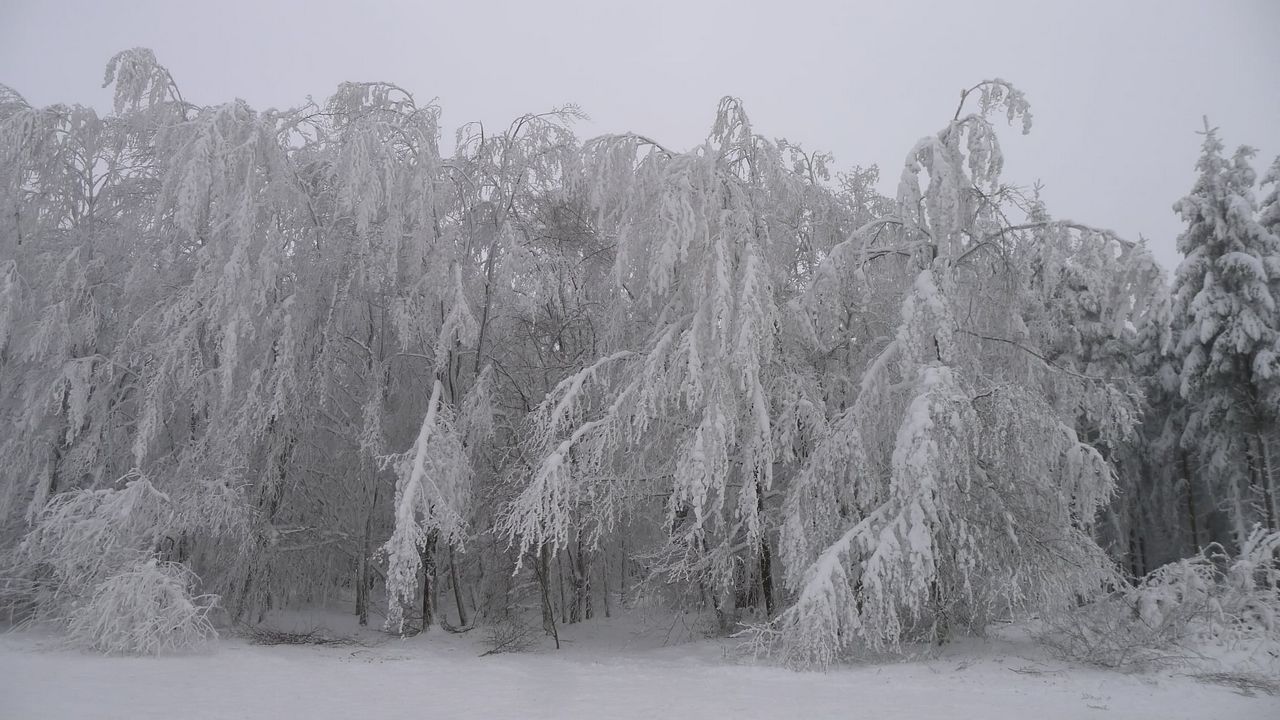Remarquez comme les arbres plient sous le poids de la neige lourde. Des arbres ont d'ailleurs ci et là cédé sous leur poids.