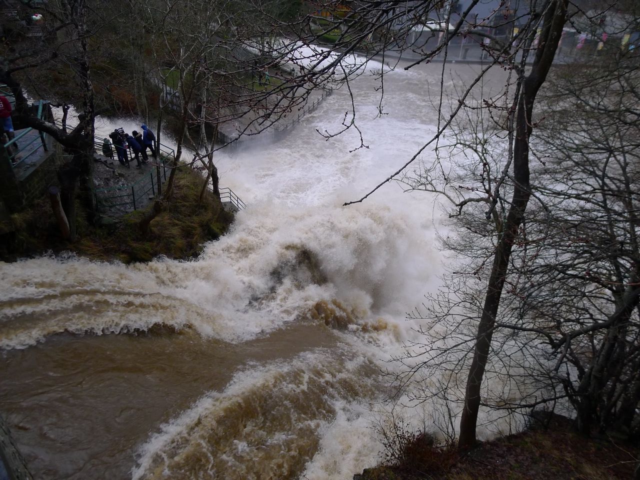 La fonte des neiges des hauteurs couplé à d'importantes précipitations en cours de dernière décade ont fait déborder de nombreuses rivières à l'est de notre pays en fin de mois, comme ici l'Amblève, à l'endroit de la cascade de Coo ce 30 janvier 2021.
