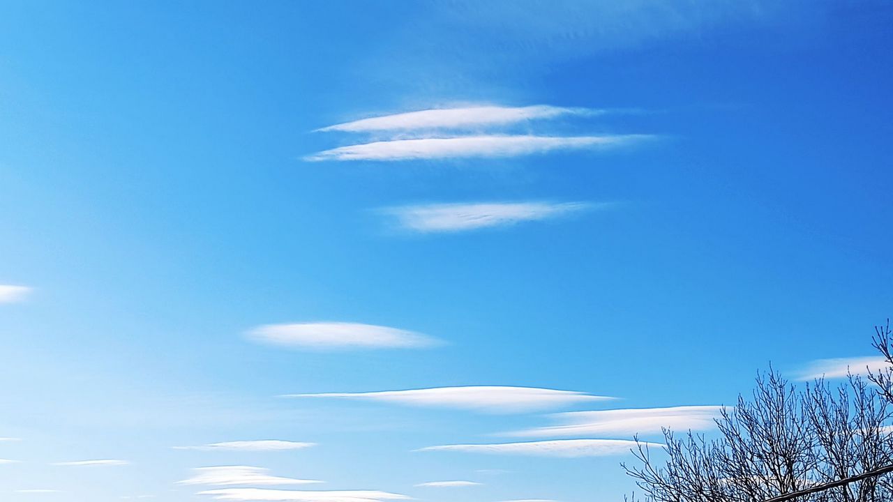 Si le phénomène est courant près des montagnes, il l'est nettement plus rare chez nous : de beaux nuages lenticulaires (Altocumulus lenticularis) étaient visibles ce 21 mars 2021 en Belgique, comme ici à Jemeppe-sur-Meuse.