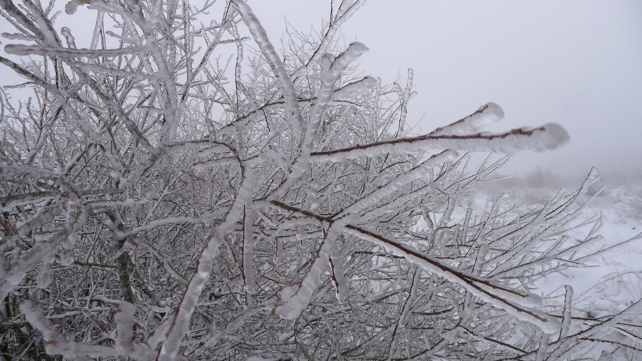 De la pluie verglaçante de la nuit a alourdi les branches de glace, à Botrange le 4 décembre 2021.