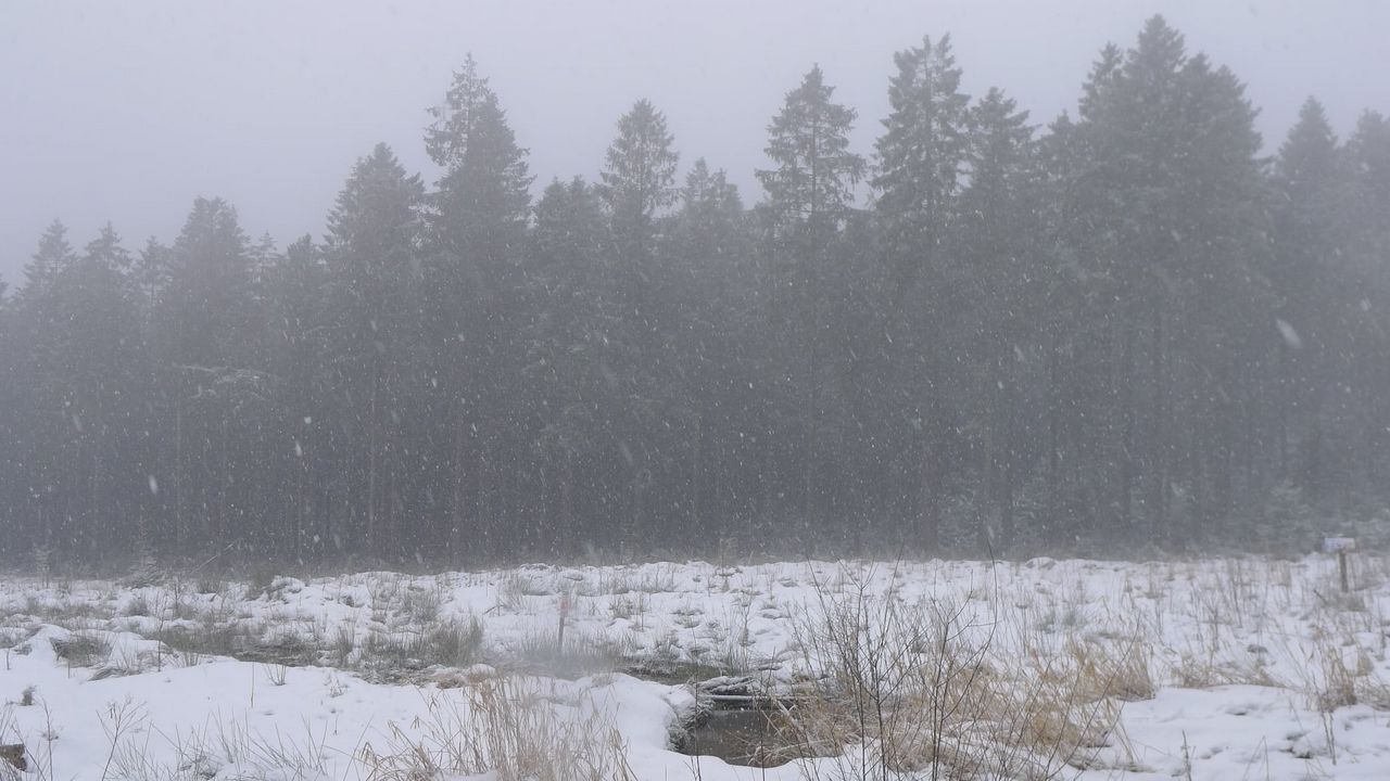 Averse de neige en Hautes Fagnes, le 9 décembre 2021.