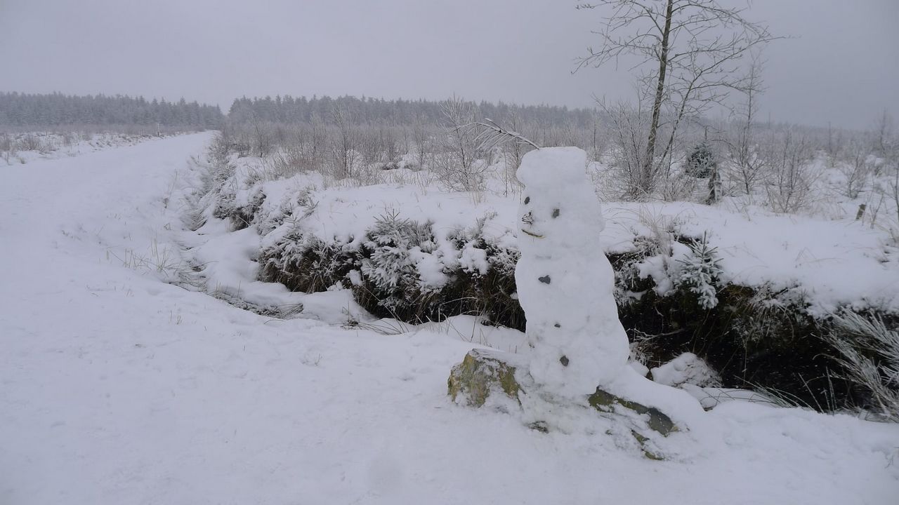 La neige est revenue en force dans nos Hautes Fagnes en ce début décembre, comme ici à Botrange le 10 décembre. Pour la joie des enfants, avec le bonheur simple de la confection d'un bonhomme de neige...