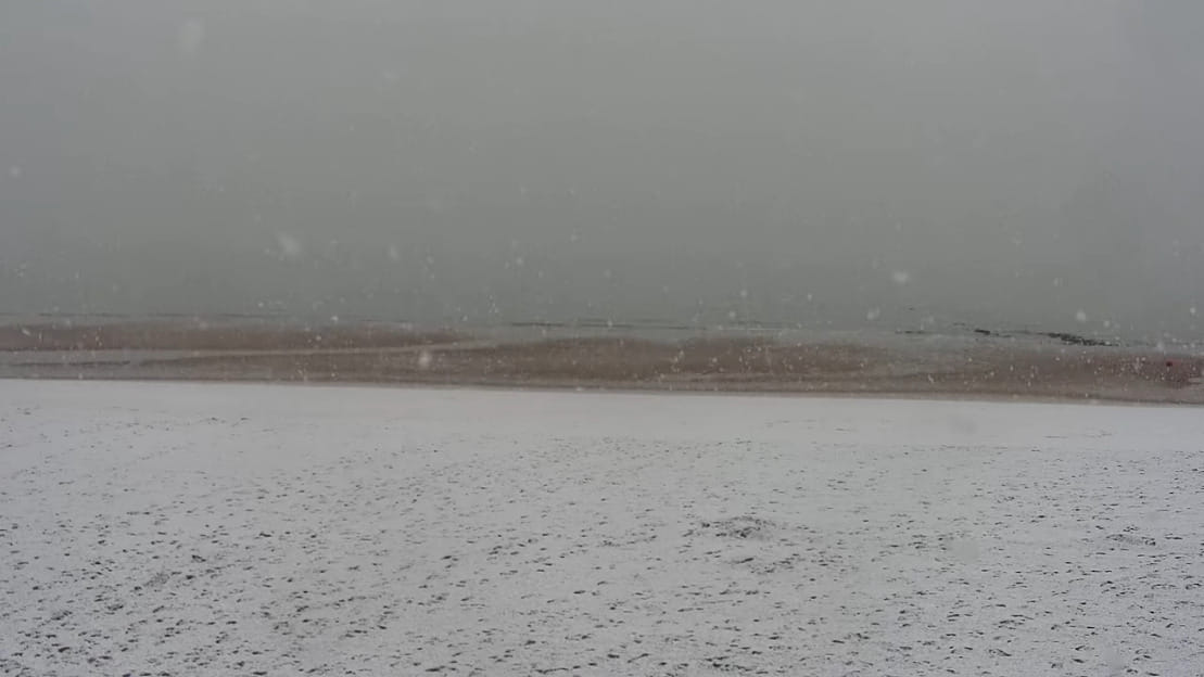 Le 10 décembre 2021, les fortes averses de neige auront permi à la plage (ici à Knokke) de se revêtir d'un manteau blanc, certes de courte durée.