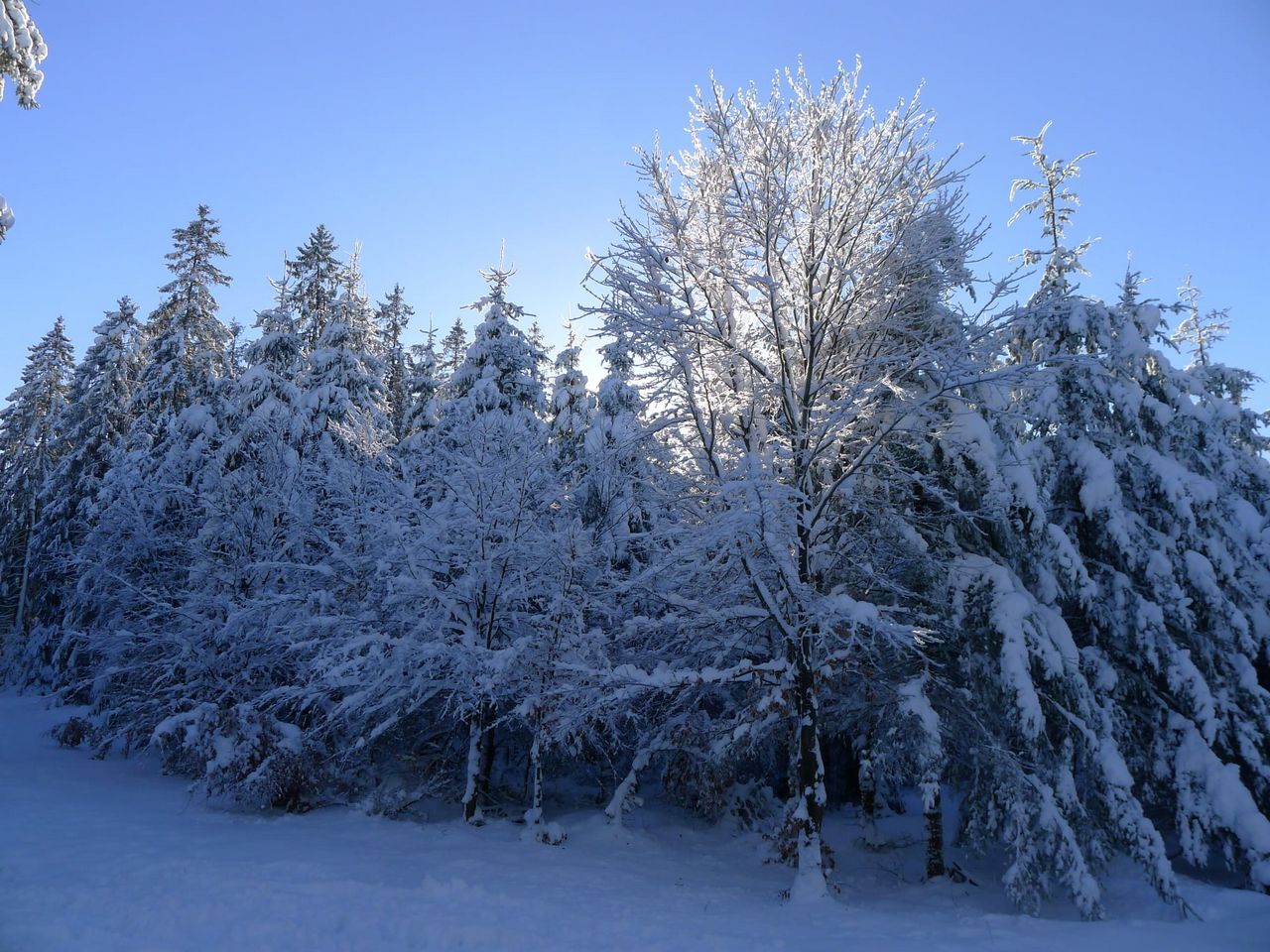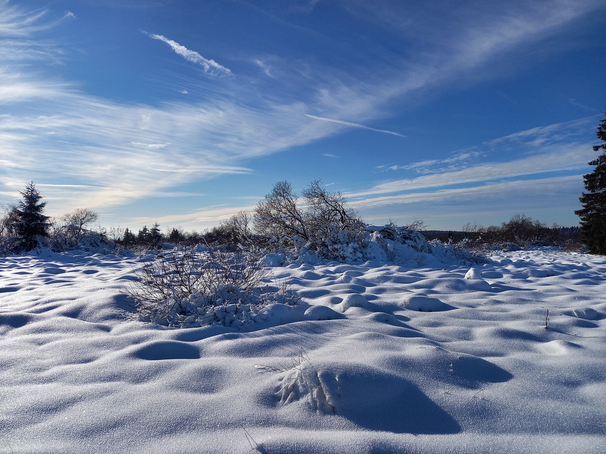 Autre vue enneigée sous un beau soleil hivernal le 11 janvier 2022 à Rocherat-Krinkelt. Quelques jour plus tard, le 14 janvier, les températures sont montées jusqu'à plus de 8°C sur le plateau des Hautes Fagnes sous un soleil radieux, au dessus de l'inversion. Néanmoins, la neige n'y fondera pas ou peu, l'air étant très sec aussi. On se croyait presque en haute montagne...