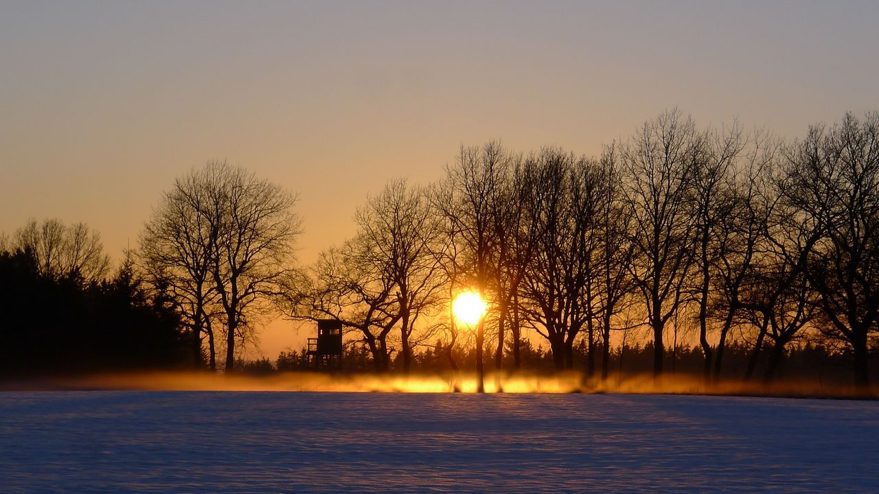 Paysage enneigé à Buccholz, le 15 janvier 2022. On rermarquera les brumes près du sol.