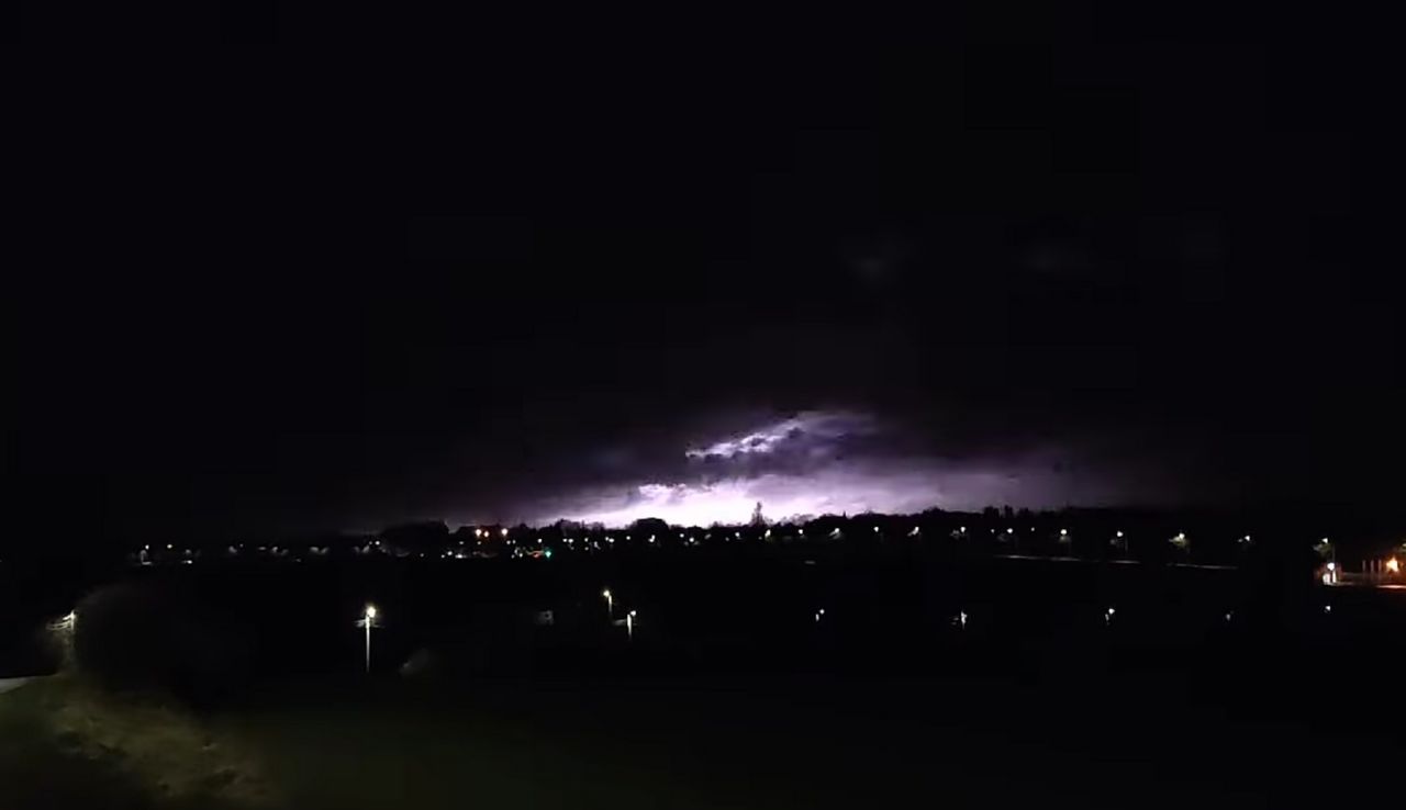 Orage au dessus de Bruxelles vu de Flawinne, le 2 janvier 2022.