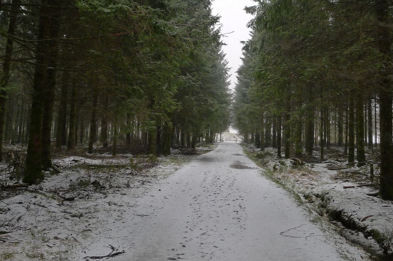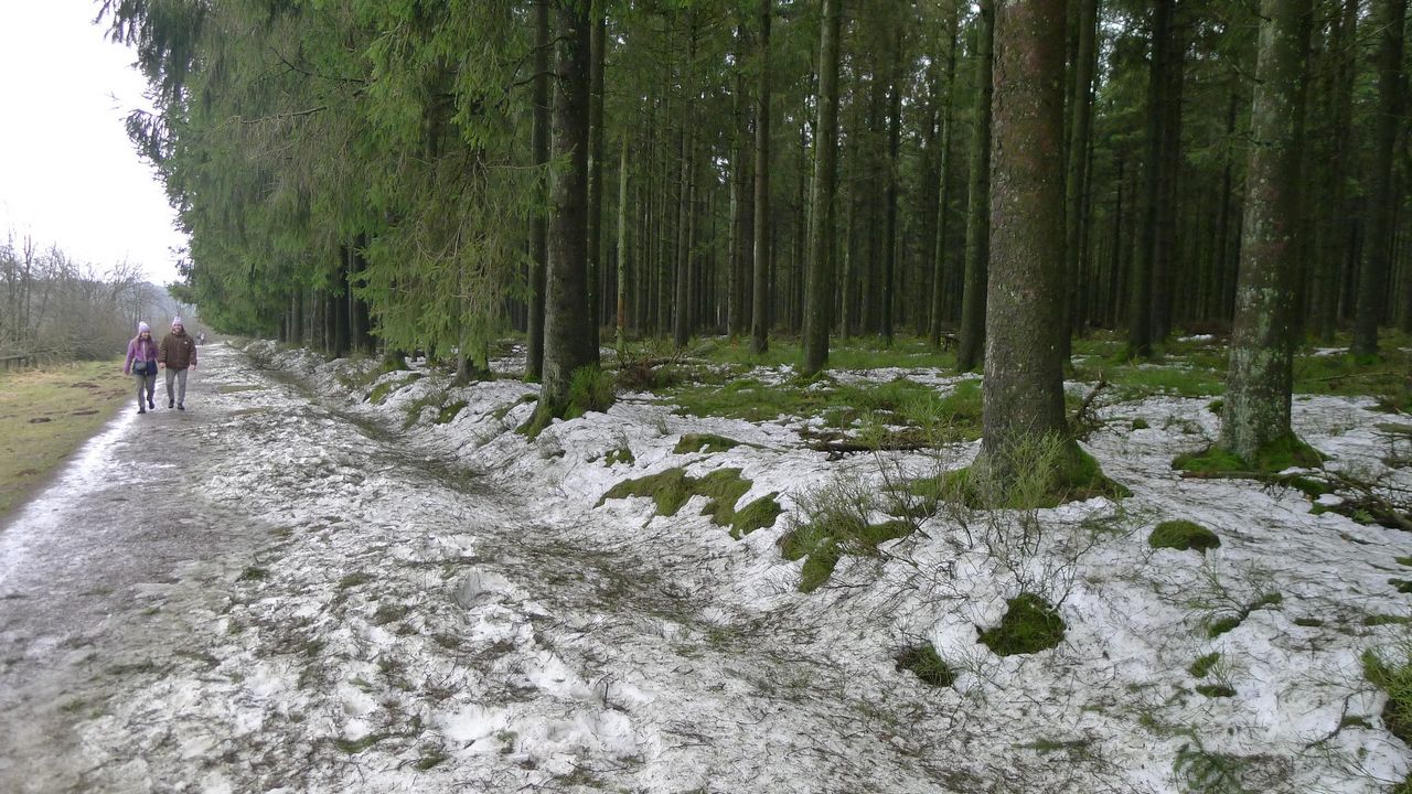 Retour timide de la neige sur le sommet de la Belgique, au Signal de Botrange, le 25 février 2023.