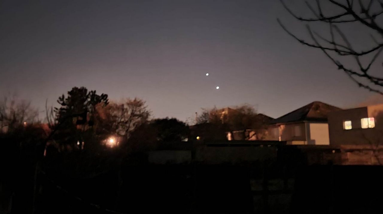 Conjonction des planètes Vénus (en bas) et Jupiter dans le ciel au soir ce 27 février 2023 à Opwijk. Les deux planètes se rapprocheront encore (en perspective) jusqu'au 1er mars : vous pourrez les voir à l'ouest, idéalement une heure après le coucher du soleil. A noter que cette nuit du 27 au 28 février ainsi que la précédente, des aurores boréales ont été vues jusqu'en Belgique (surtout au nord de notre pays) suite à une forte tempête solaire*.