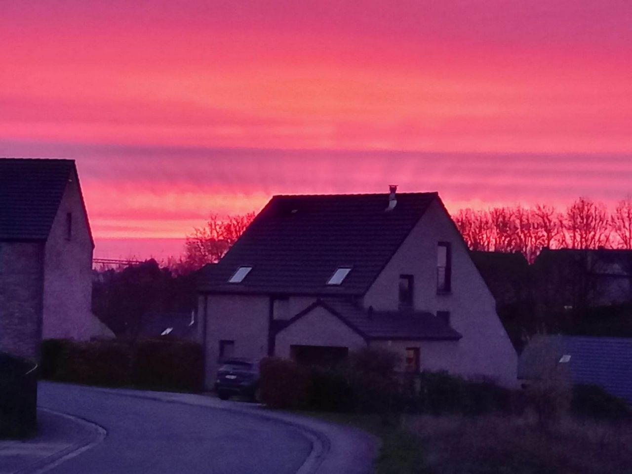 Ciel rougeoyant le matin du 6 avril 2023 à Braine-L'Alleud.