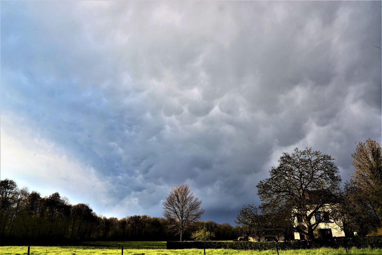 Mammatus dans le ciel de Sautin ce 21 avril 2023 juste après une faible averse orageuse.