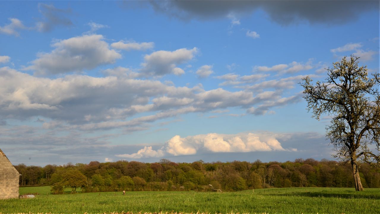 Enfin une large éclaircie dans le ciel de Sautin après plusieurs jours de grisaille et de pluie, le 26 avril 2023.