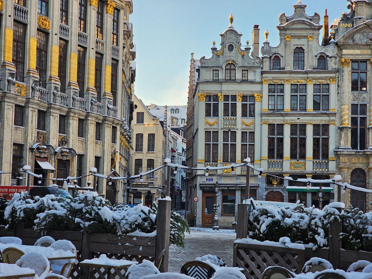 Avec l'effet d'îlot de chaleur généré par les grandes villes, la neige au sol au centre des grandes villes devient de plus en plus rare. Raison de plus de profiter de ce magnifique cliché d'une des plus belles grand-place, la Grand-Place de Bruxelles, le 18 janvier 2024.
