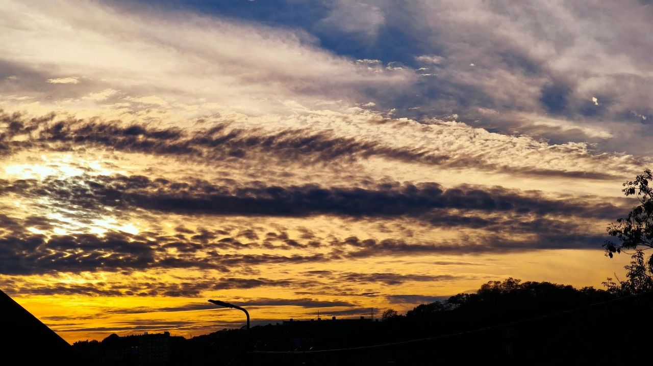 Jeux de lumières dans les nuages au couchant à Jemeppe-sur-Meuse, le 2 octobre 2025.